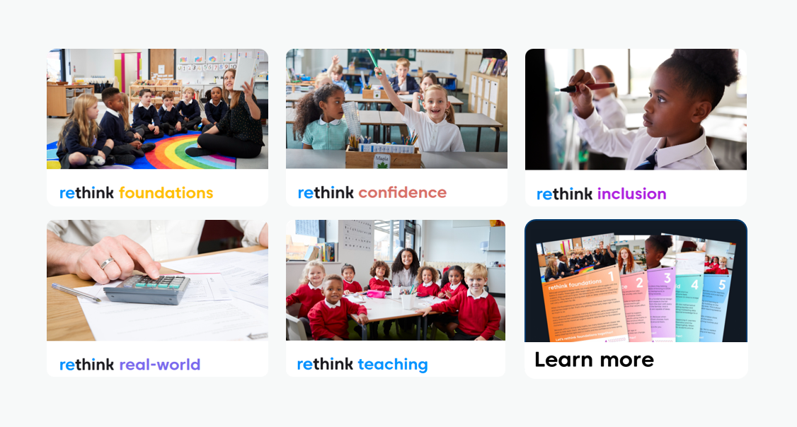 Along the way, we’ve helped shape resources and approaches now used in schools across England and in over 140 countries. Rethink Maths exists to support high-quality content, inspiring professional development and a positive experience of maths for everyone.